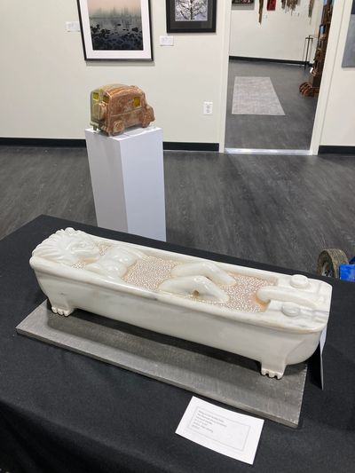 One of 48 artists from Washington's Sculptor's Group selected for the Sculpture Now show at at Harmony Hall Arts Center (Ft Washington, MD). Featuring my recent limestone sculpture mentioned in the Washington Post's review of the show: "...is echoed by Alan Rhody’s “Jax-in-the-Box,” which looks like a flimsy children’s toy but was in fact carved from a block of limestone. Metal and stone do appear in “Sculpture Now 2022,” but most often in amusingly deceptive guises."